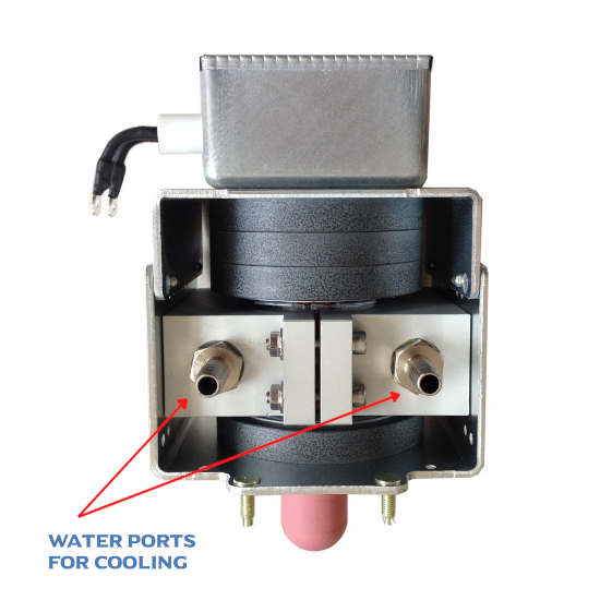 Nuclear Accelerated Generator Water CoolingLink Back to NAG: Home Page Link to Origins Law Patents: TheAtomicBattery.com This documents is a general overview of how the basics of the water cooling works for the nuclear magnetron. The water jacket also provides some more radiation shielding in help stopping X-rays and gamma rays emissions from the device. You can see the water ports for cooling a 3000 watt magnetron. Magnetron are so efficient in power conversion that they don't produce much heat.